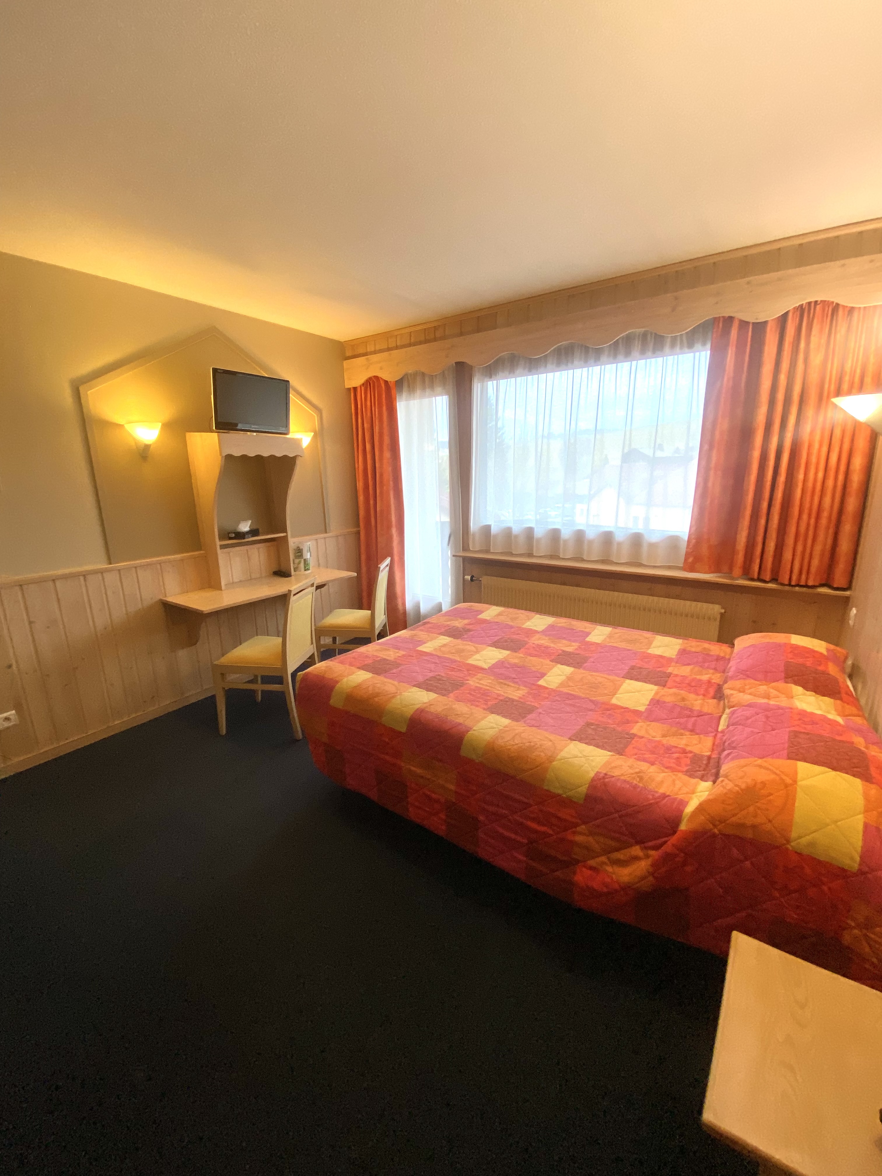 La chambre est très spacieuse. Lambris clairs aux murs et tissus aux tons chatoyants créent une ambiance particulièrement douce et chaleureuse. Douche et WC privés. Lit de 140. Écran plat et TNT. WIFI gratuit. Téléphone direct avec possibilité de réveil. Dans la salle de bain : serviettes, produits d’accueil, sèche-cheveux. Chaque chambre a été rénovée dans un souci de confort, de bien-être et d’intimité. Places de parking mises à disposition et possibilité de réserver un des trois garages privatifs situés dans l’hôtel. Départ à 10h. Arrivée à partir de midi. A L’Hôtel Etoile des Neiges, nous vous recevrons avec chaleur, simplicité et savoir-faire.